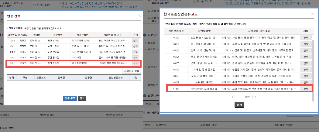 6. 해외직구대행업 선택, 조금 아래로 내려서 전자상거래 소매 중개업 선택 합니다.