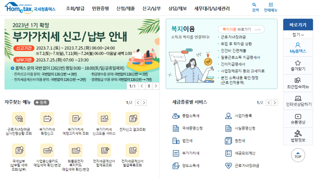1. 사업자등록증은 국세청 홈택스에서 발급할 수 있습니다. 홈택스 홈페이지에 접속하고 금융인증서 또는 간편인증으로 로그인 합니다.